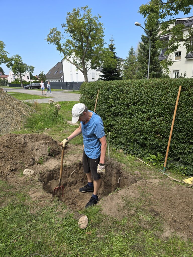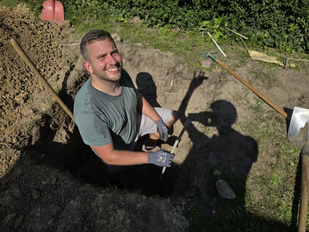 Die ersten „Bauarbeiten“ beginnen – Baugrube für das Bauwasser