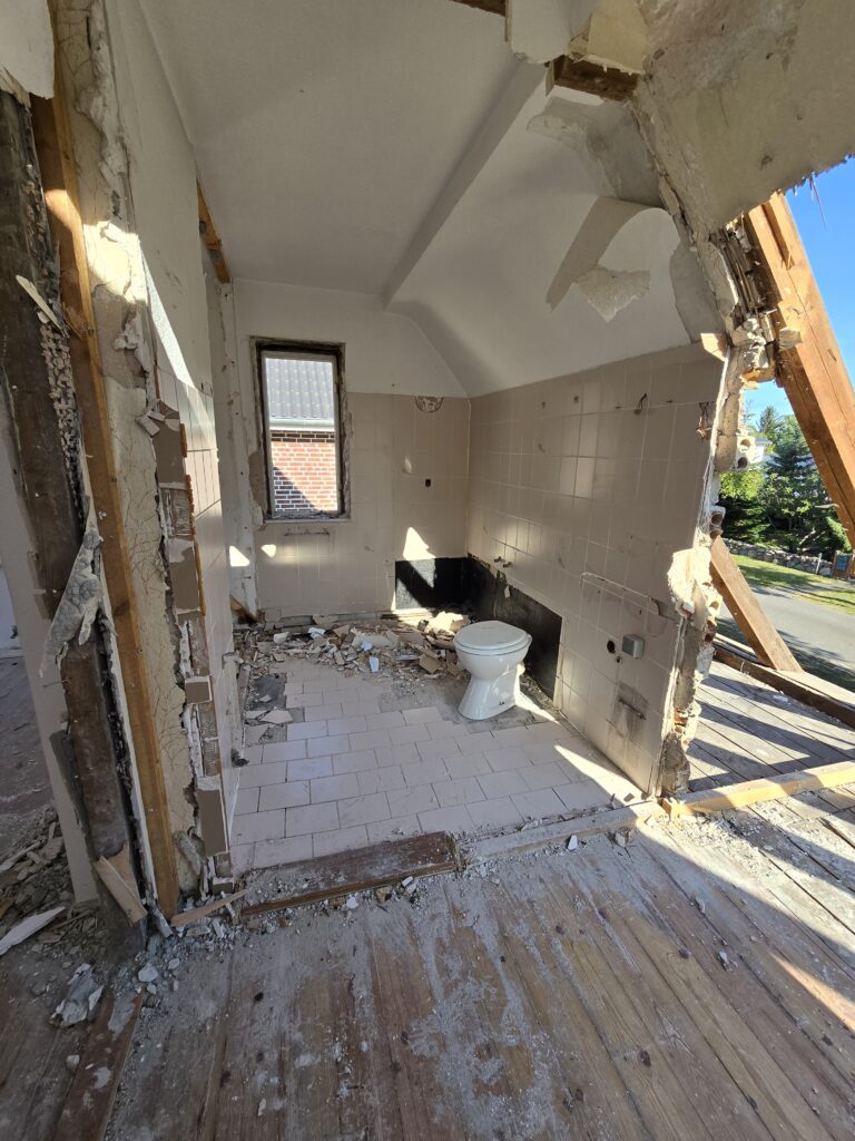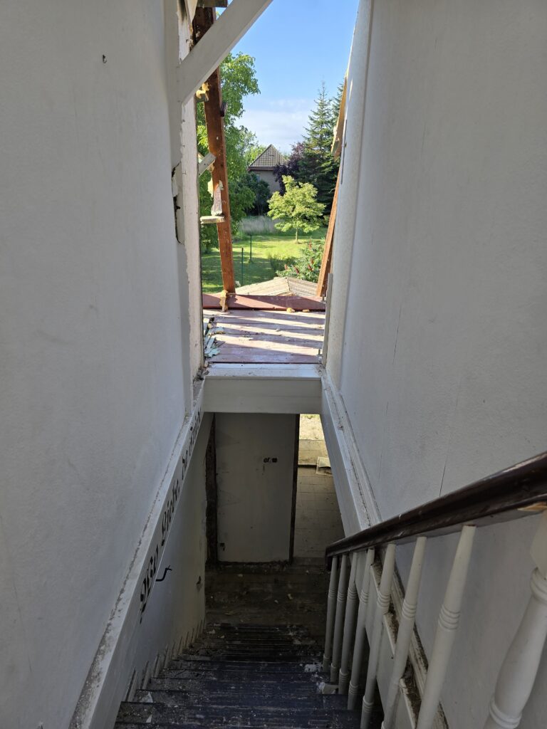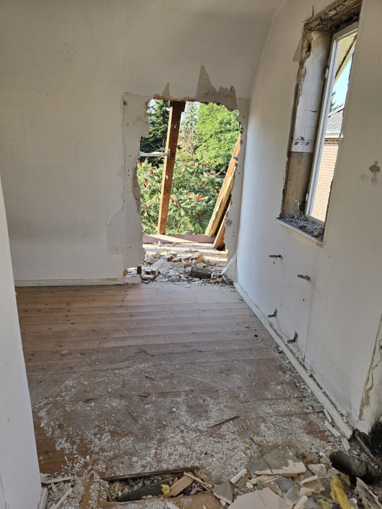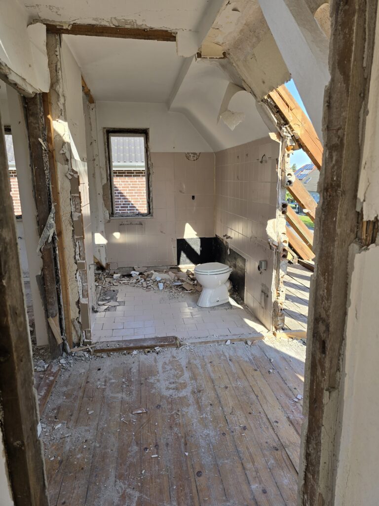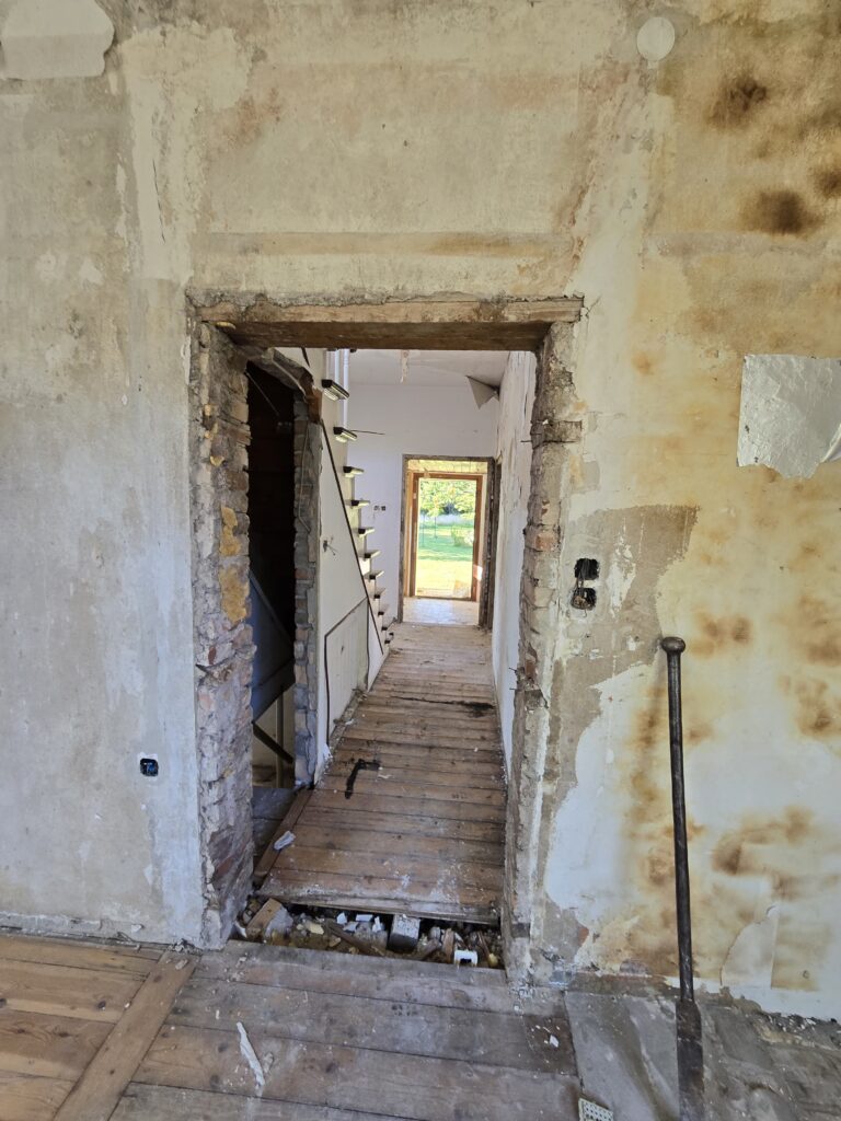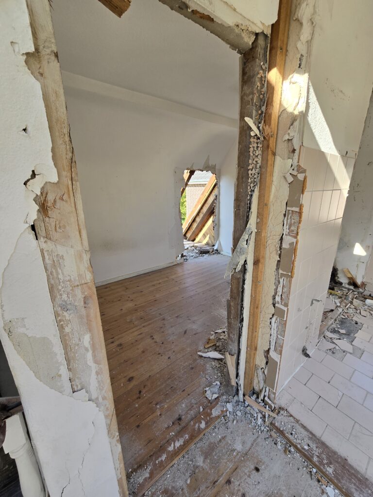 So wurde dann im Laufe der Woche mit der weiteren Entkernung begonnen. Für den Rest muss wohl der Bagger anrücken. Dieser befindet sich jedoch noch auf einem anderen Abriss, bevor er zu uns kommt.